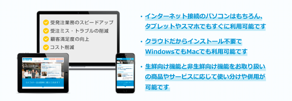 | 主要機能 | ・商品カタログ・お気に入り発注 ・マルチデバイス対応 ・受注データの一元化 |