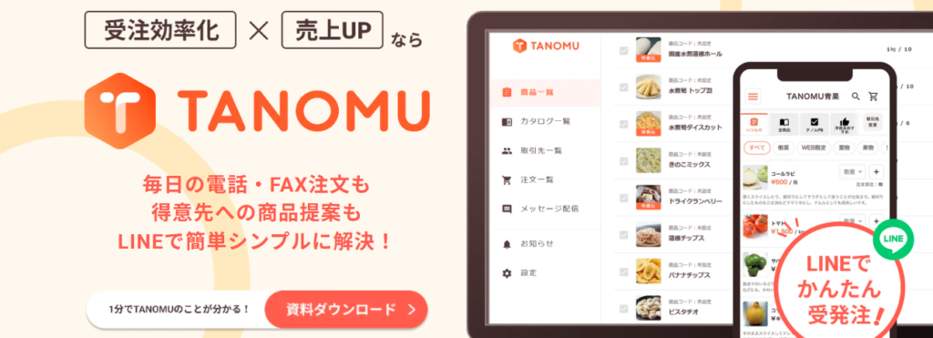 | 主要機能 | ・販促・売り込み機能 ・LINE・Web発注 ・受注管理・事務効率化 |