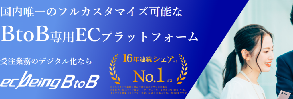 株式会社ecbeingのecbeing BtoBは、受注業務のWeb化による転記作業の自動化に加え、顧客ごとに商品や価格を設定することが可能です。