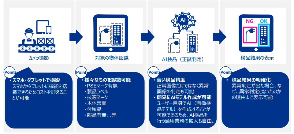 AIによる画像認識技術を活用した荷役支援システムは、スマートフォンやタブレットで撮影した商品の画像をAIが自動解析し、検品・仕分け・荷下ろしの際に発生する目視確認作業を自動化します。