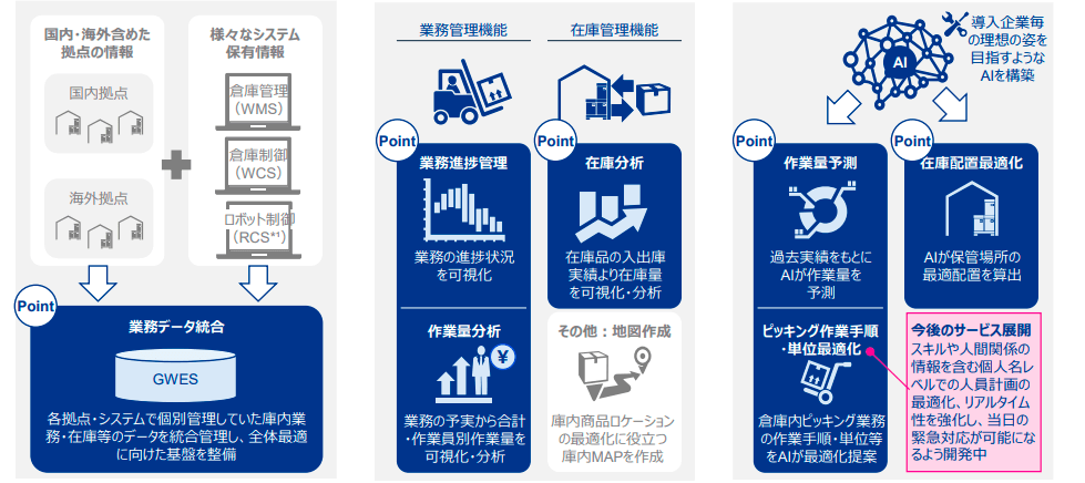 AIとデータ分析を活用した物流統合管理システムは、各拠点で個別に管理されていた在庫・人員・庫内作業データを共通基盤に統合し、最適な人員配置や在庫配置をAIが自動提案することで、倉庫運営の無駄を大幅に削減しています。