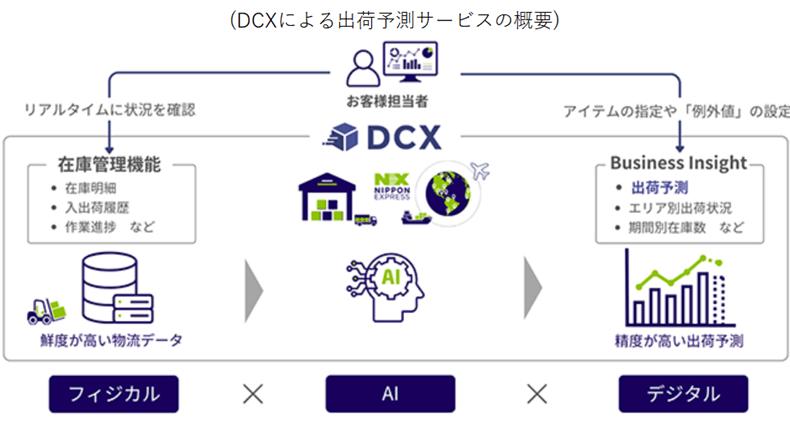 さらに、D2C向け物流Webアプリ「DCX」では、AIを活用した出荷予測サービスを提供しています。過去の出荷データをもとに最大3カ月先までの出荷数量を予測し、在庫管理の属人化を解消しています。