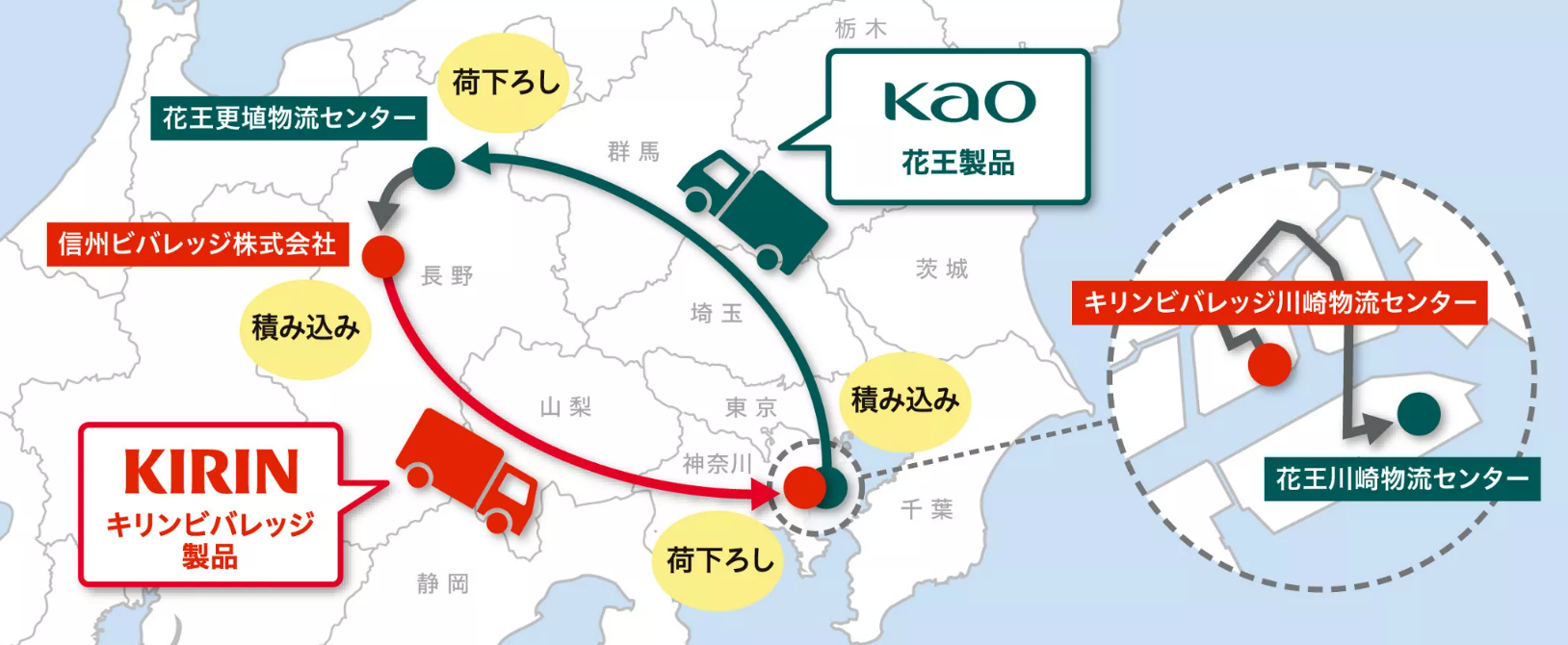花王株式会社は、国内物流網の再構築と共同配送の推進により、物流効率化と脱炭素化を両立しています。これまで地域ごとに分散していた物流拠点を統合し、需要変動に柔軟に対応できるネットワークへ最適化しました。