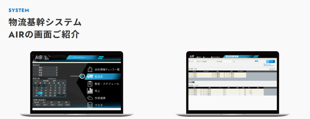 「トータル物流基幹システムAIR」は、配車・動態・日報・請求といった運行管理に関わるすべての工程を単一基盤で統合できるクラウド型システムです。