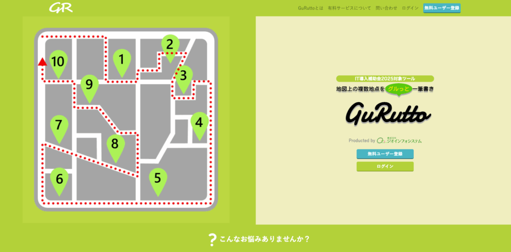 「GuRutto(グルっと)」は、地図情報を活用して配送ルートを一筆書きのように自動作成できるクラウド型運行管理システムです。
