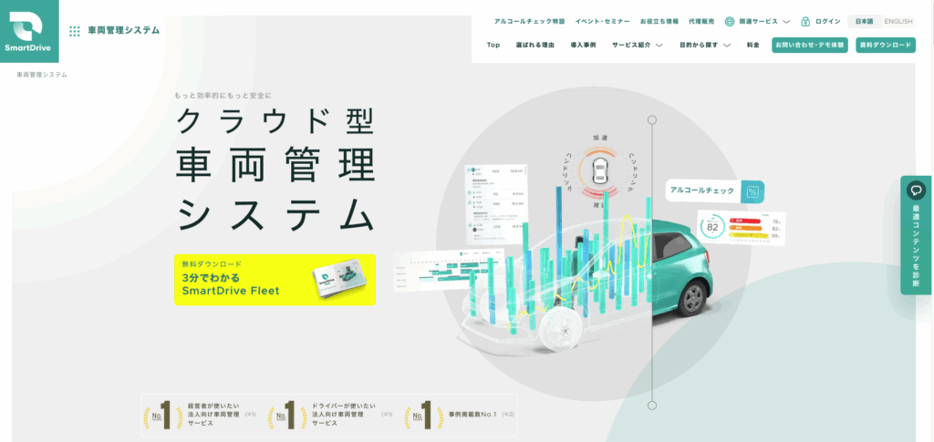 「SmartDrive Fleet」は、IoTデータとクラウド技術を活用し、車両の位置情報・走行データ・安全運転傾向をリアルタイムで可視化する運行管理システムです。