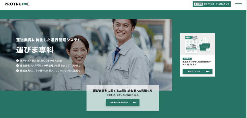 「運びま専科」は、受注・配車・日報・請求・支払などの運送・配送業務を一元管理できるクラウド型の運行管理システムです。
