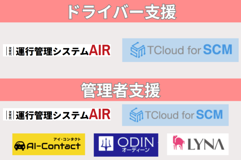 | ドライバーの労務管理 | ・システムで労働時間を自動記録・労働基準法や改善基準告示に準拠した運行計画を作成 |