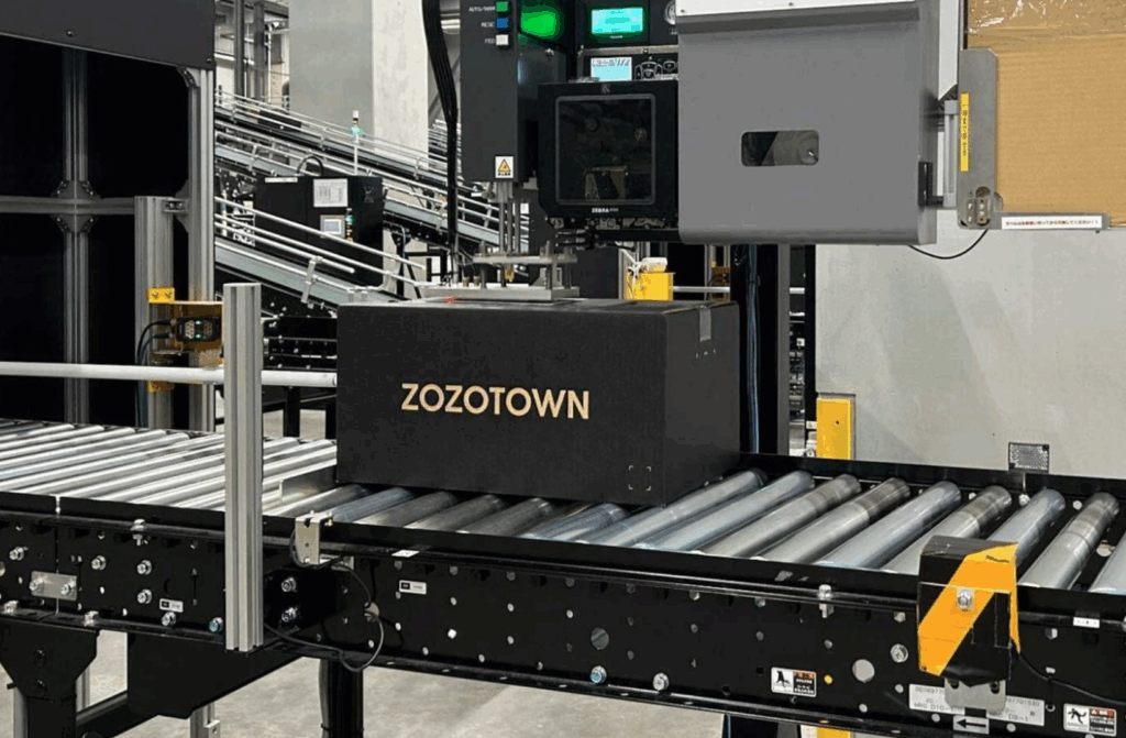 梱包工程の自動化は、梱包機・自動封緘機・寸法計測器を組み合わせ、商品ごとに最適なサイズで箱詰めを行う仕組みです。