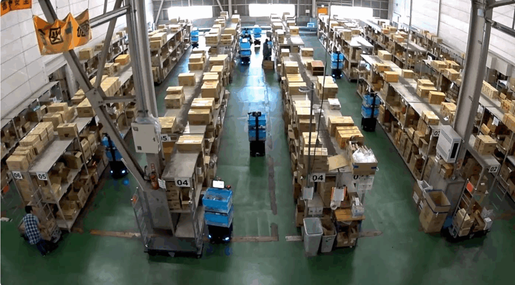 世界規模で100万台以上のロボットを配備し、急速な物量増加や短納期化が続く中でも、少人数で安定した処理能力を発揮できる「歩かない倉庫」の代表例であり、物流自動化の基準をつくったモデルといえます。