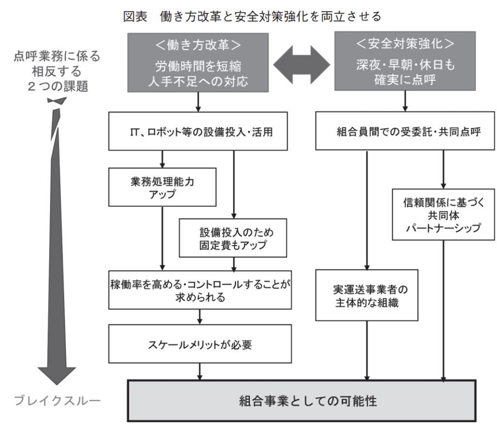 国立流通政策研究センターの報告によると、AI・IoTを活用した点呼の実証実験が紹介されており、テレビ電話を用いた遠隔点呼に加えて顔認証やセンサーによる状態判定を行う「ロボット点呼」を試行した結果、点呼の確実性を維持しながら深夜帯の管理工数を削減できたとしています。
