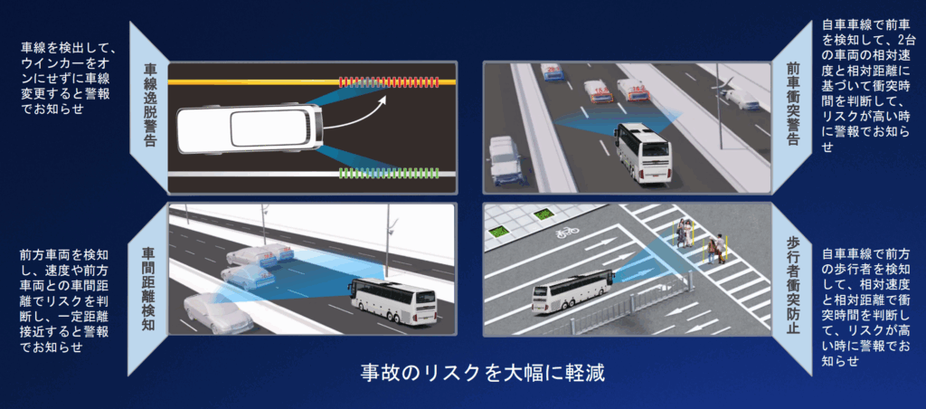 これらの技術は運行管理の枠を超えた「車両自体の安全性向上」に寄与するものであり、運送事業者にとって導入メリットが大きい領域です。