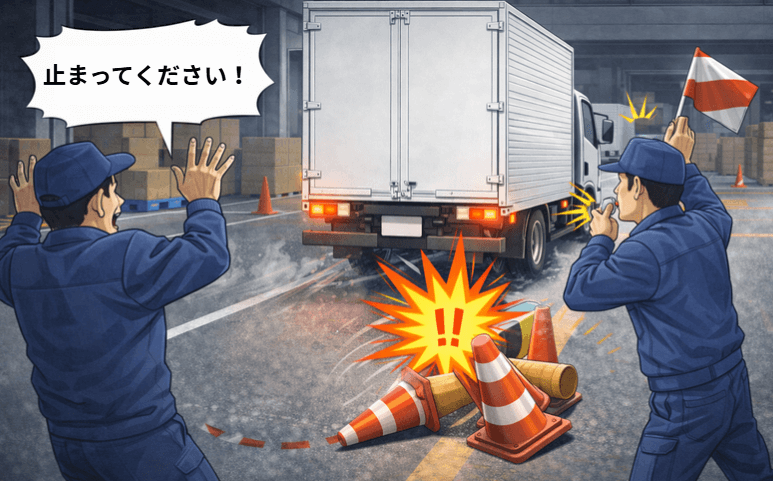 バックモニター等の安全装置だけに頼らず、過去の危険事例をチームの共通知識として蓄積することで、物理的な死角に潜むリスクを全員の意識で補完し、事故を未然に防げます。