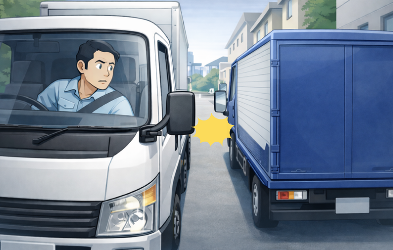 状況センターラインのない狭い道路で対向の大型車と離合する際、双方のサイドミラーが接触しそうになった