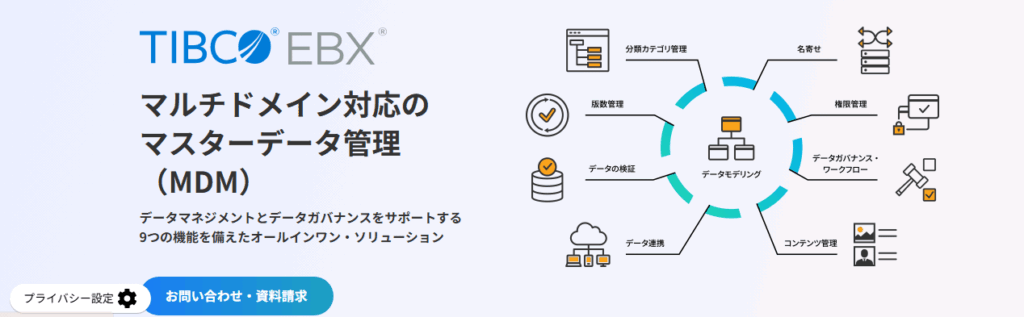 | 対応業務 | ・マルチドメインMDM ・製品体験管理(PXM / PIM) ・データ品質・ガバナンス ・データ共有・配信 など |