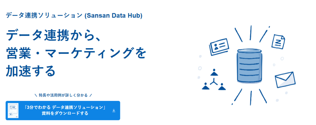 Sansan Data Hubは、社名変更や吸収合併といった表記の揺れにも強い高度な名寄せエンジン(Sansan Data Hub)を搭載しており、手入力の手間を省きながら、常に信頼性の高い顧客データ基盤を構築できます。