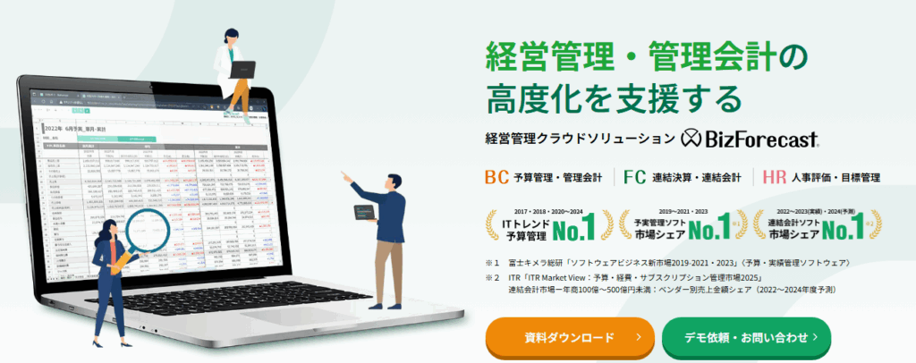 「BizForecast」は、予算管理、連結会計、人事評価など幅広い業務に対応し、部門ごとに点在するデータを集約して経営管理の高度化を支援します。