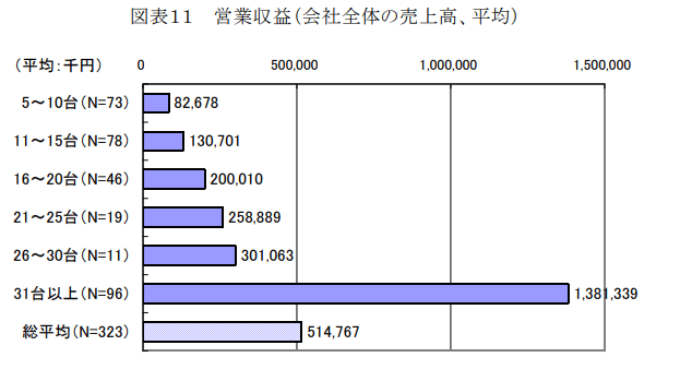 また、車両台数31台以上の規模を持つ事業者は営業収支で黒字を確保できている反面、5〜10台規模の小規模事業者では平均して赤字(営業収支率100%未満)に陥っており、コスト増を粗利でカバーしきれない収益性の二極化が顕著となっています 。