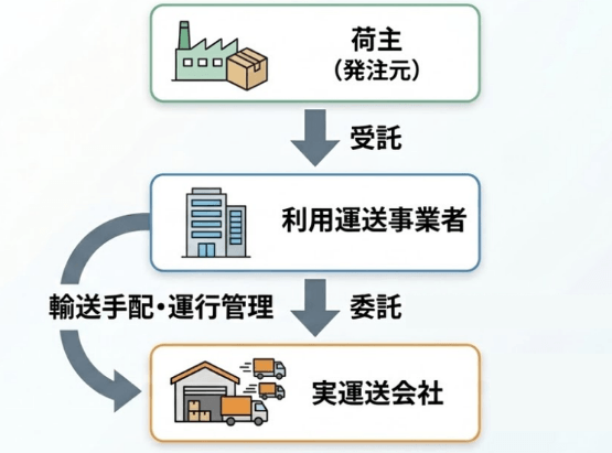 利用運送事業者とは、輸送の手配や運行管理を担い、実運送を行わない事業者です。